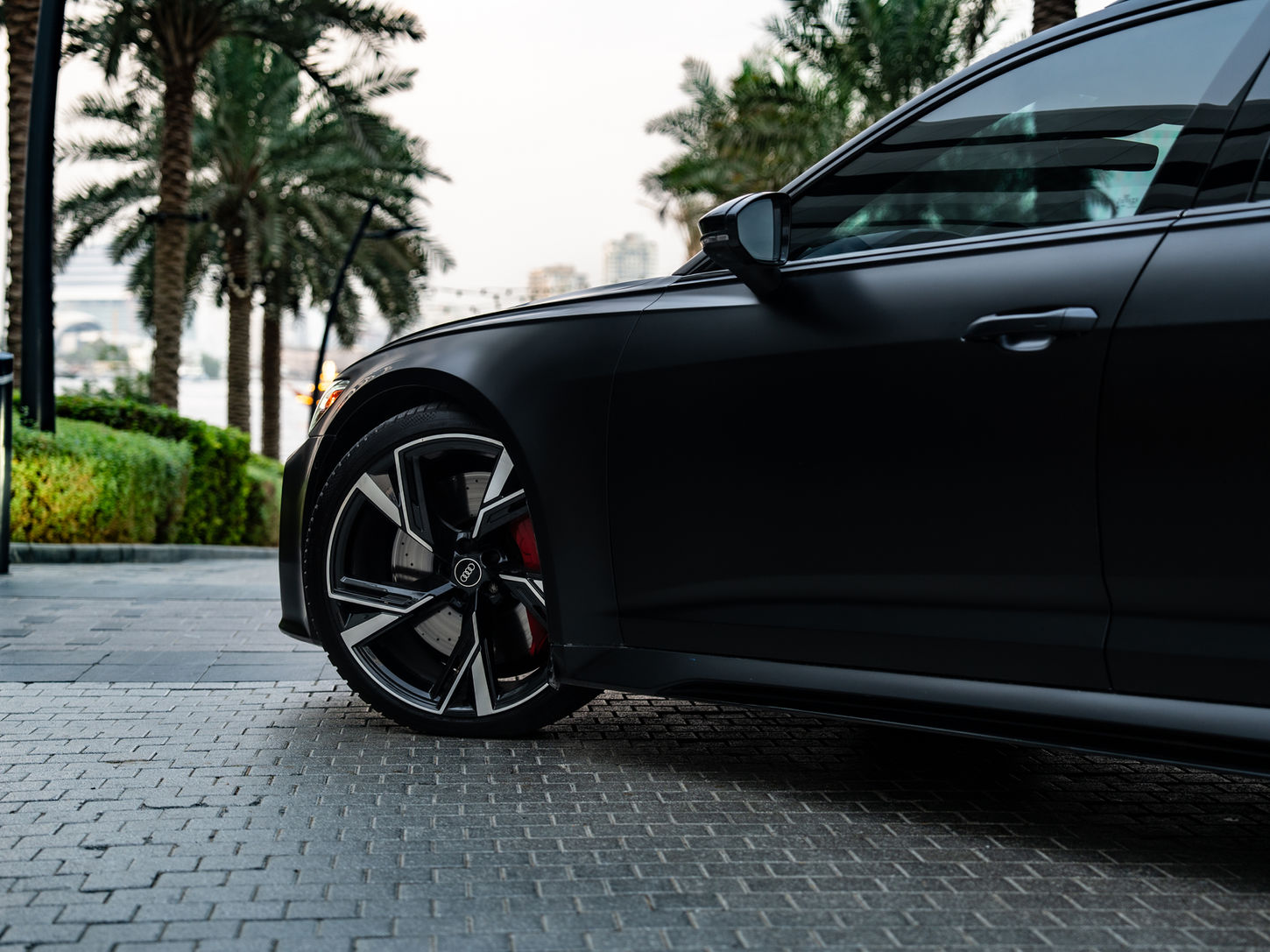 Jantes Audi Sport 22″ 5 branches en V trapézoïdales, montées en 285/30 R22